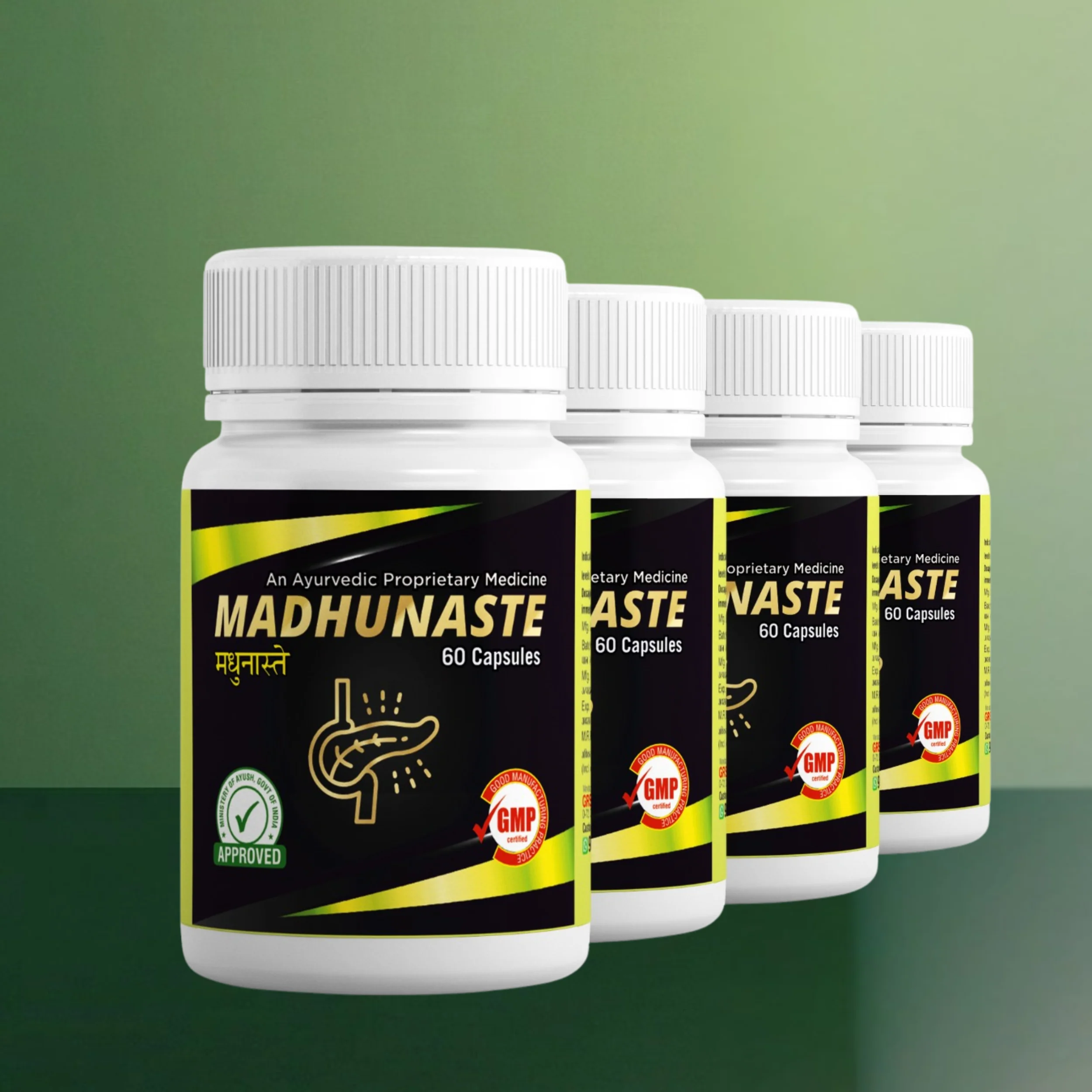 “मधुनास्ते” कैप्सूल 100% नैचुरल और आयुर्वेदिक औषधि है जो आयुष मंत्रालय से अप्रूव्ड है। “मधुनास्ते” कैप्सूल, 15 रामबाण आयुर्वेदिक जड़ी- बूटियों से निर्मित है। इसमें करेला, नीम,जामुन, आँवला, बेलपत्र, गिलोय, मेथी, शुद्ध शिलाजीत, बनाबा, चिराता, गुरमार, सदाबहार, विजयसार, सप्तरंगी और मामज्जक हैं। ये सब डायबिटीज़ के लिए रामबाण है।